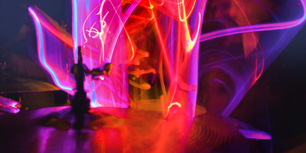 9 original works focuses on bringing Quiet Riot's rhythms from sound to sight in a highly limited collection of abstract visuals. Much like a painter utilizing oils of different colors, Banali worked with a wide array of drumsticks that light in various ways to craft rhythms that translated to artwork.